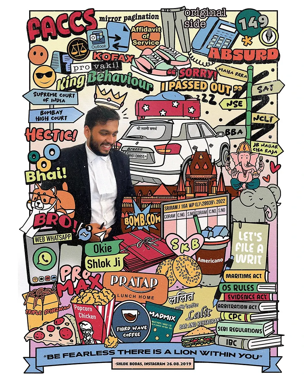 I got commissioned to create a mega-collage as a farewell gift for a lawyer from their office colleague — packed with 50 tiny elements featuring office quirks, law jokes, favourite foods, books, and all the moments that made their workspace their world.